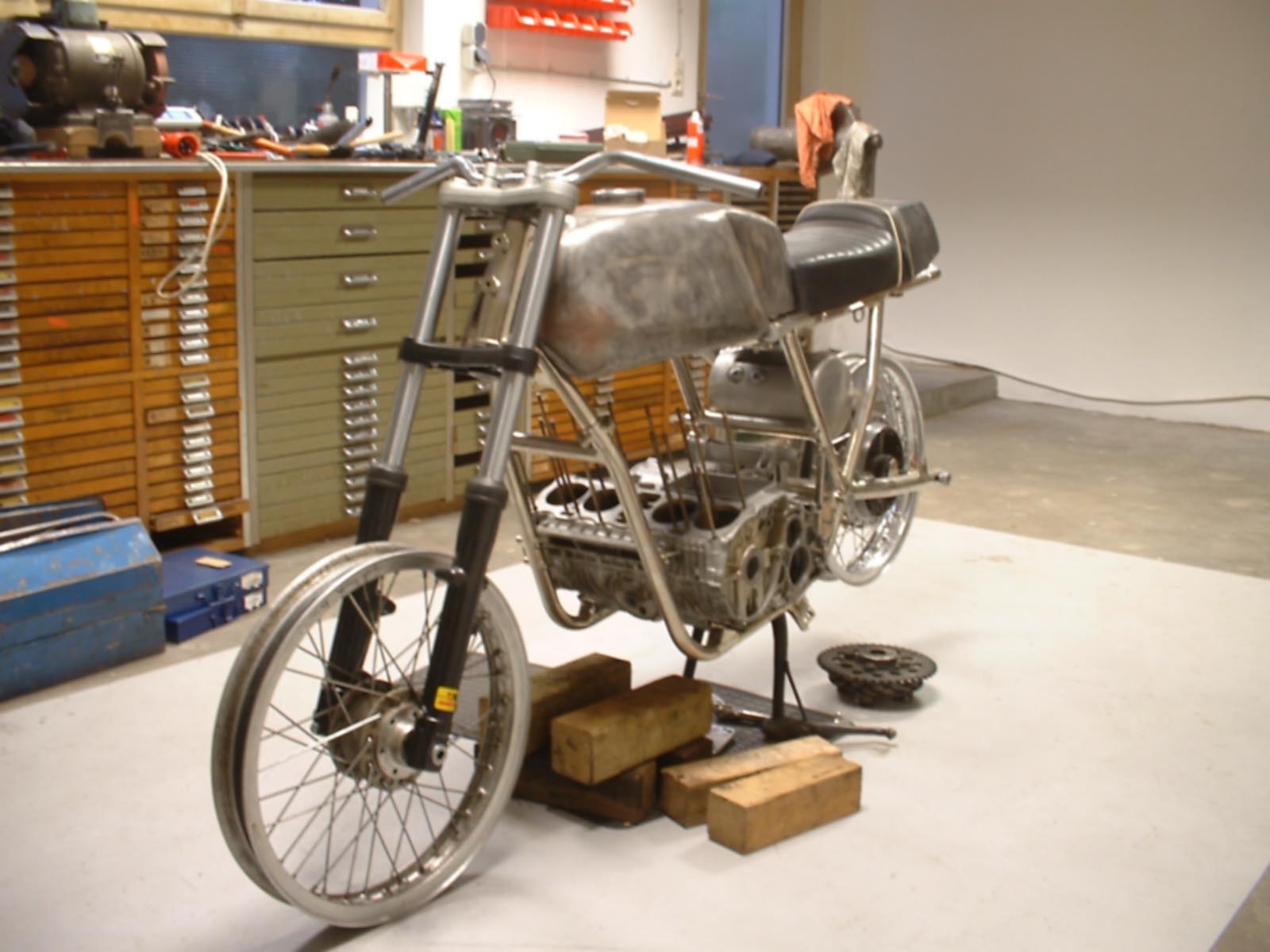 I decided to restore the frame, search for the missing parts and build up a completely original Seeley-Honda. But - as it always happens with longterm projects - now my beloved Seeley is going to become a classical cafe racer which will be unique in a lot of ways... |